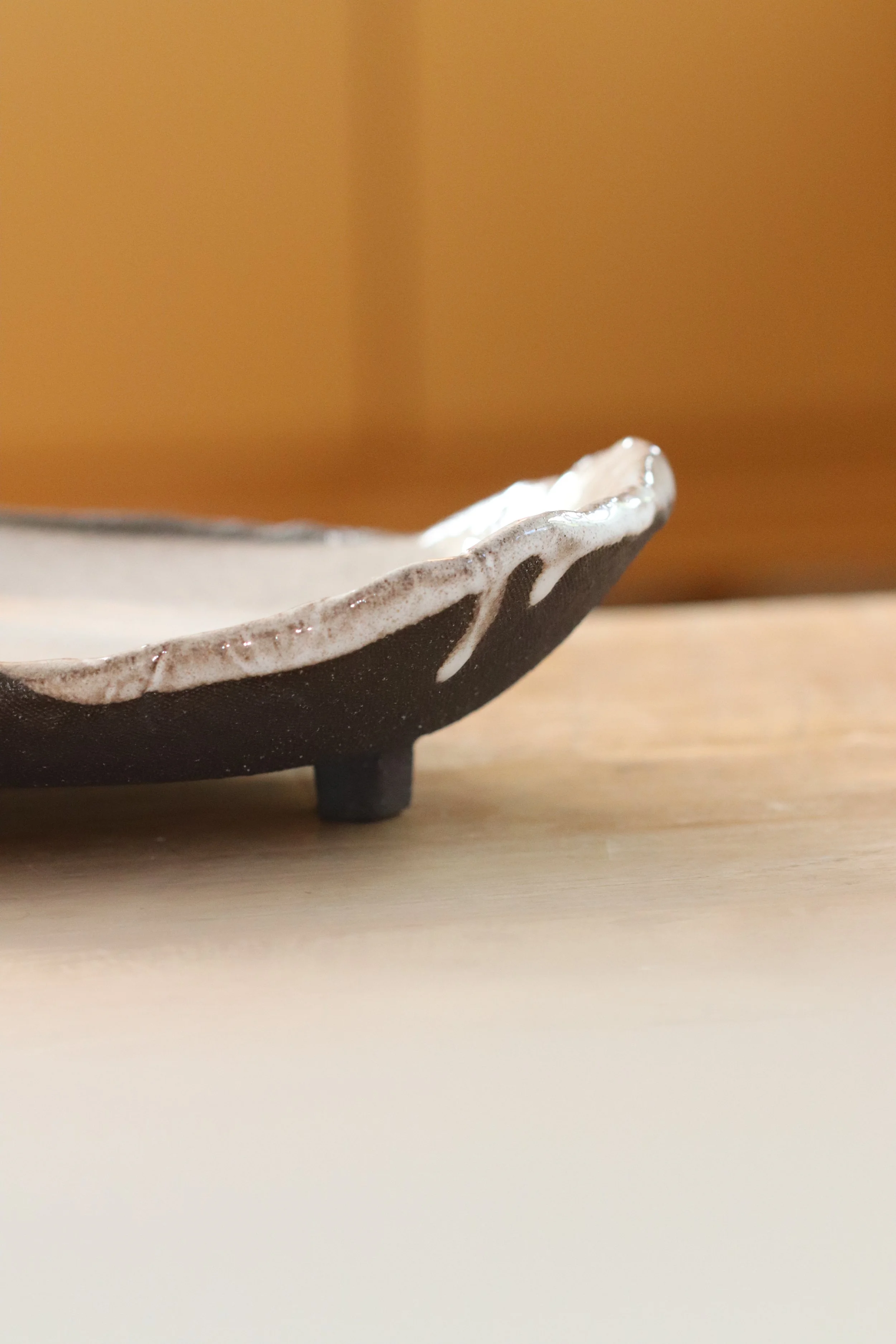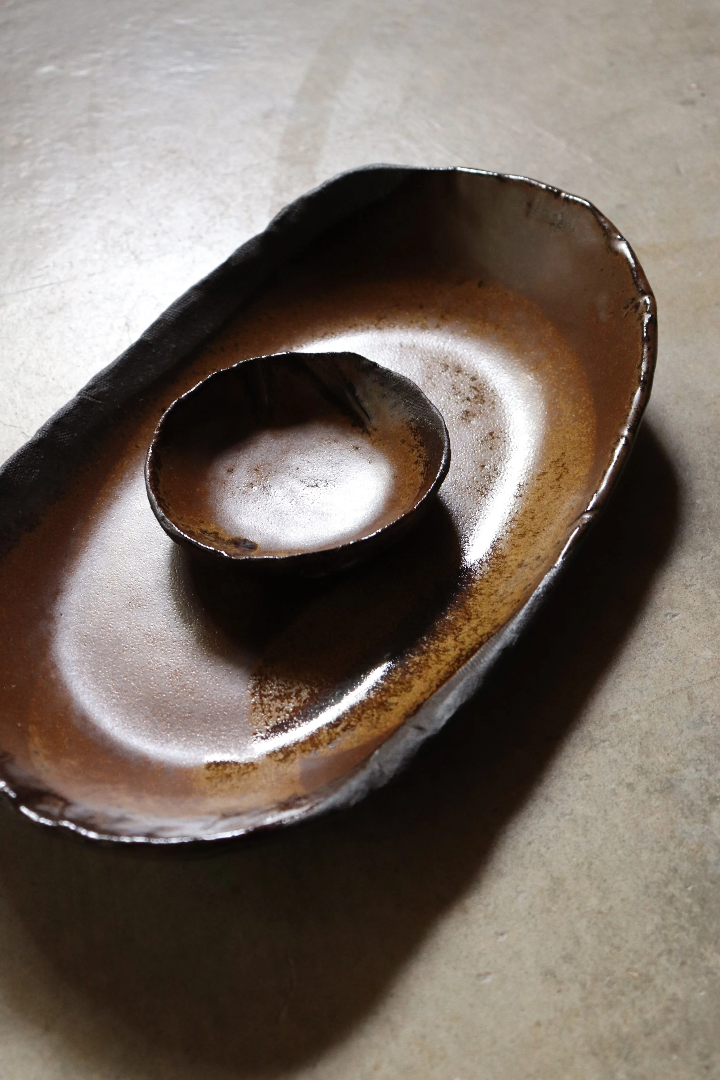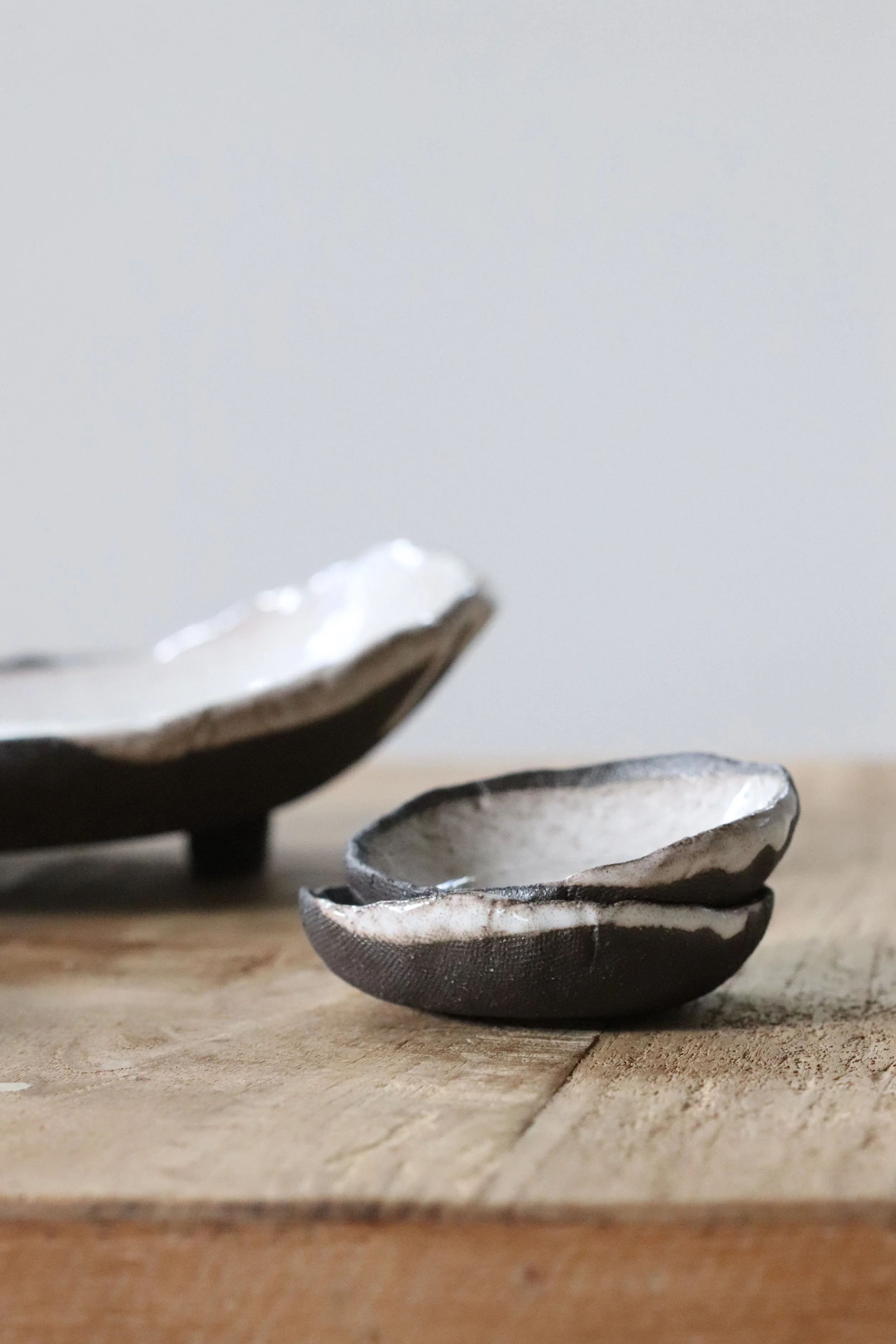 Below are some of the images of the plateware designs that were created for this restaurant. Each piece needed to be robust enough for purpose, food safe, dishwasher friendly, stackable yet created with individuality. The dark clay body was selected by Mark and pieces were designed to have a rustic organic style with a little bit of a Wabi-Sabi Japanese influence.